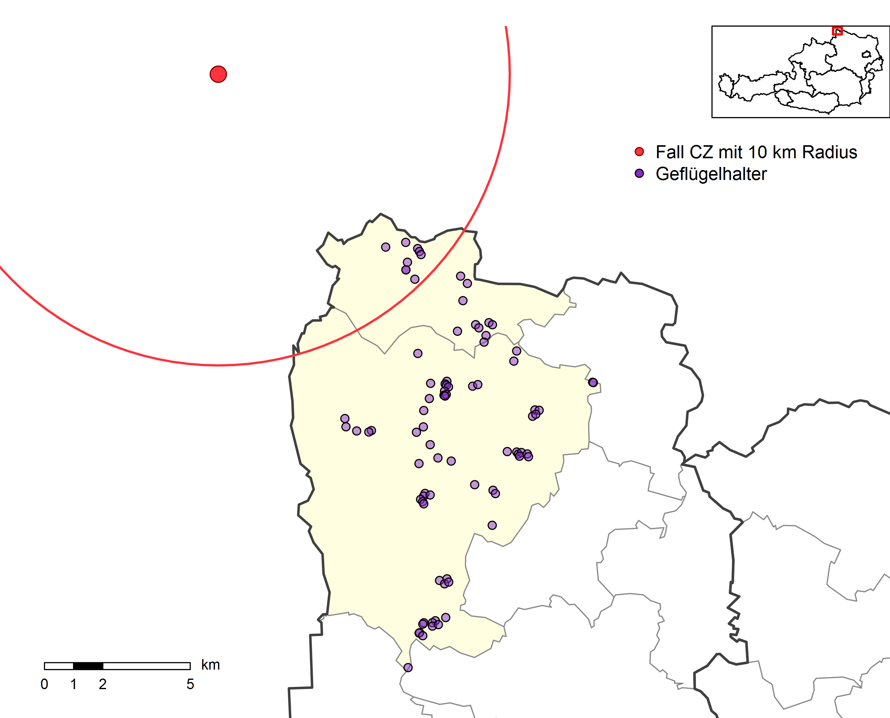 Aufgrund eines Ausbruchs der Geflügelpest in Tschechien nahe der österreichischen Grenze wurde am 22.11.2021 eine Überwachungszone seitens der BH Gmünd eingerichtet.